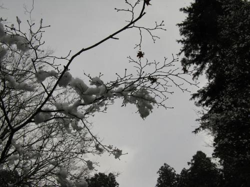 この写真は、雪が止んで、木々に積もった雪も風で大分落ちてしまった時のものですが。