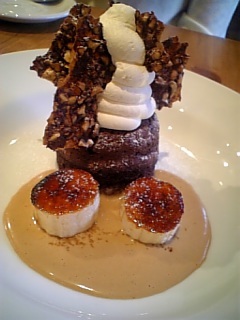 濃厚なチョコレートケーキの中には、温かいチョコソースが潜んでいます。