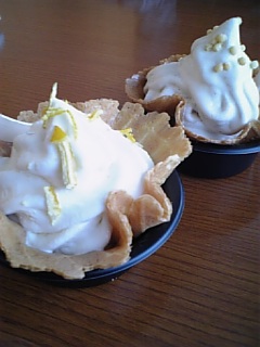 柚子は、皮がソフトクリームの中に混ぜられていて美味しかった!